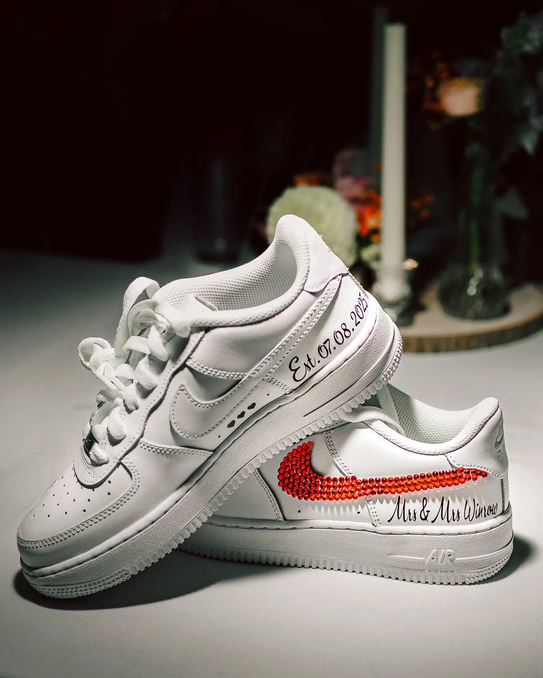Custom Nike trainers with the newlywed name and date, a stylish and meaningful touch.